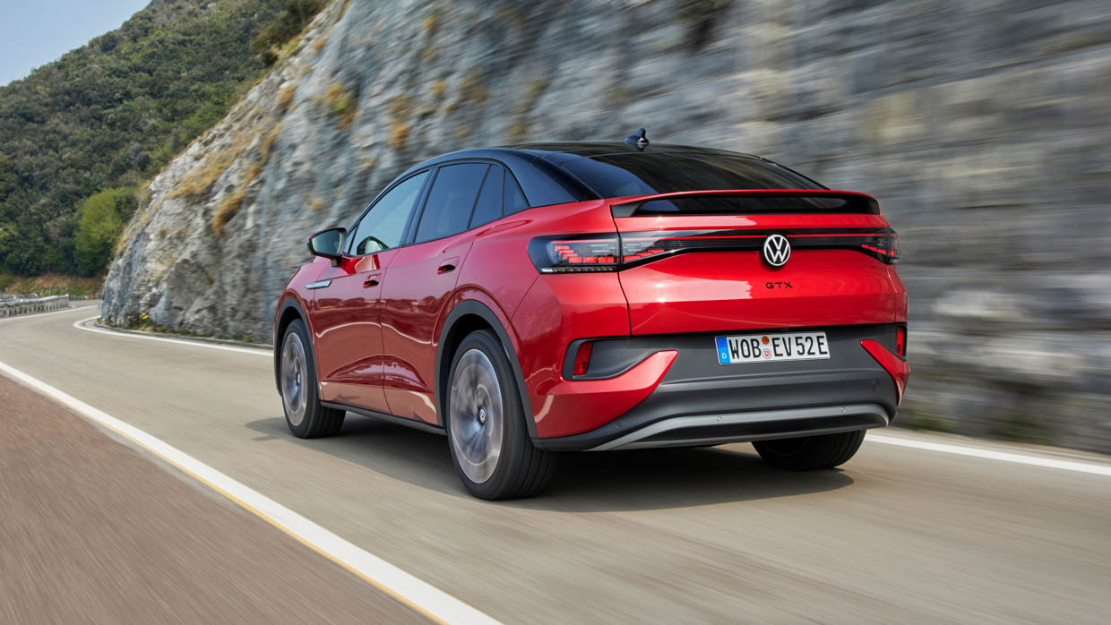 Even though Volkswagen will be bringing rear-wheel drive (RWD) and all-wheel drive (AWD) GTX versions of both the ID4 and ID5 to Australia, only the latter was available for our sampling: a pair of ID5 GTX coupe-SUVs sporting a 220kW dual-electric motors, 77kWh-usable batteries and Kings Red paintwork.