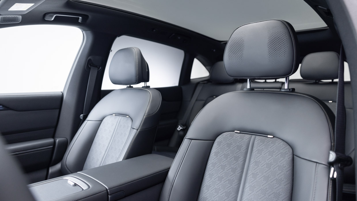 Our test car’s white and grey nappa leather interior was attractive without being too in-your-face (though black—and much brighter—cabin colours are optional in China). The front seats are highly customisable and comfy, with ventilation, heating and massage included.