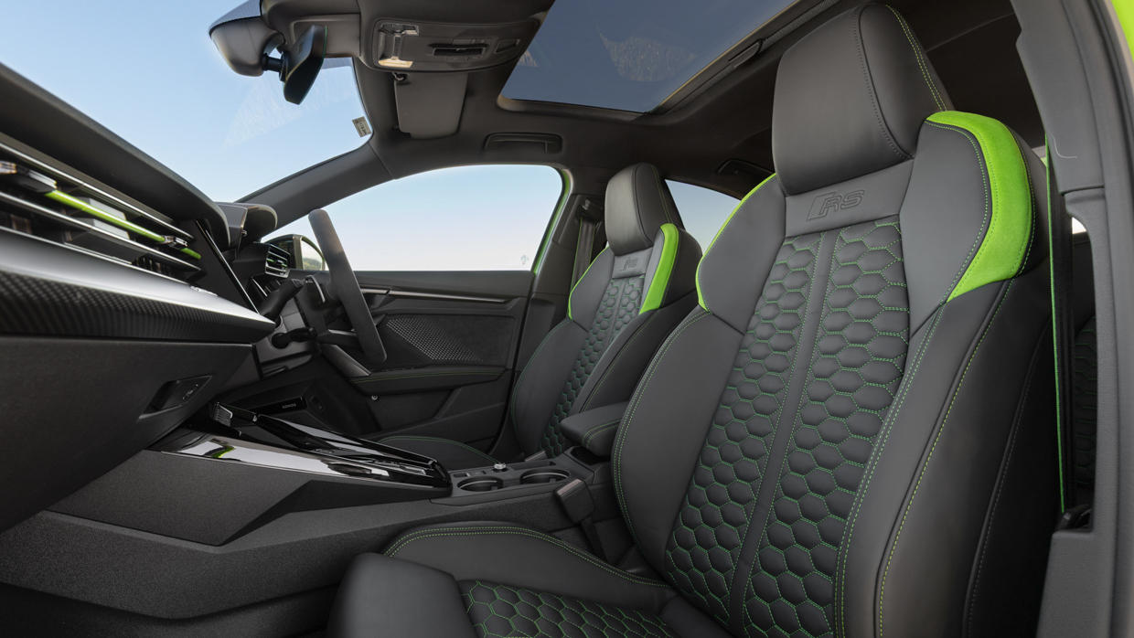 Audi’s RS3 is the most premium version of the A3 and S3 series vehicles and comes with a hearty specification list to match.