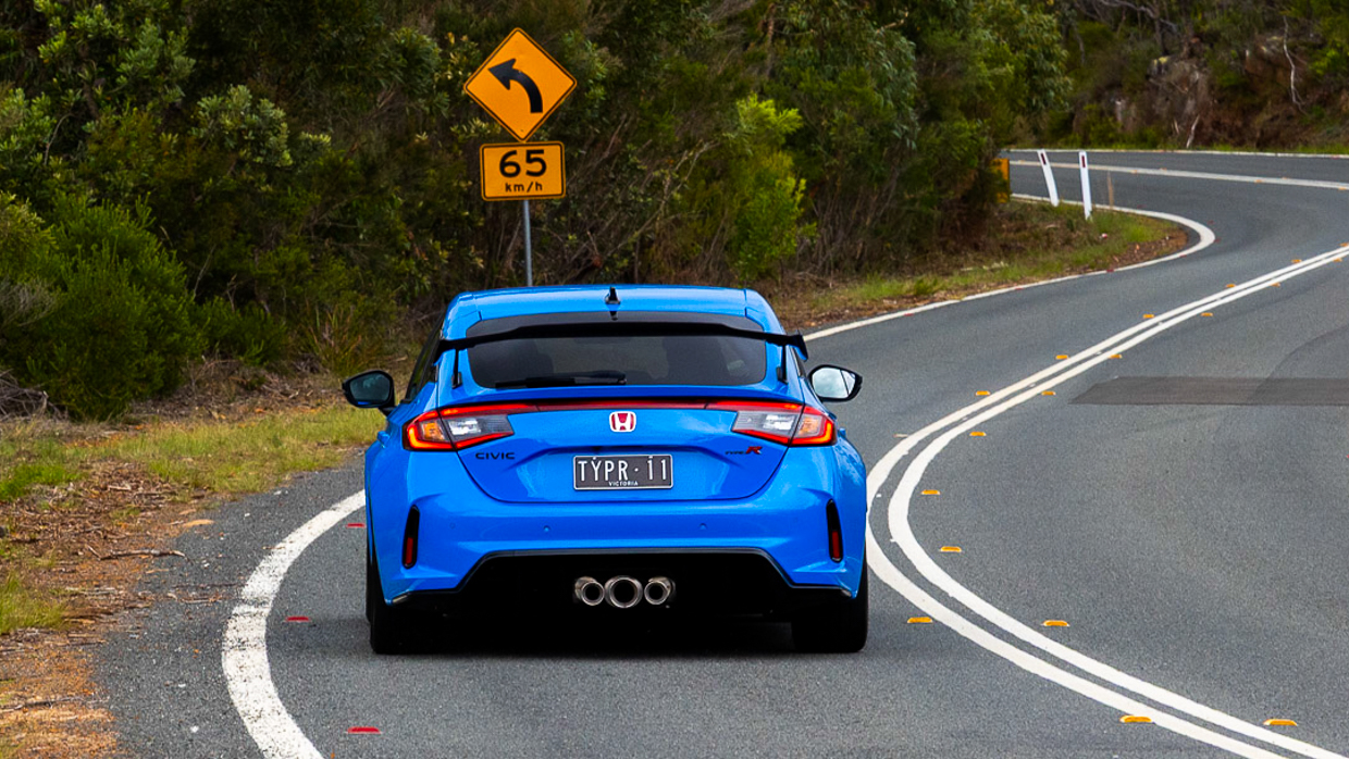 Once it’s hooked up in third gear the Type R is properly fast — way quicker than its impressive 5.4 seconds (claimed) 0-100km/h sprint suggests. Last-gen, naturally aspirated sports cars such as a Porsche 911 will struggle to keep up.
