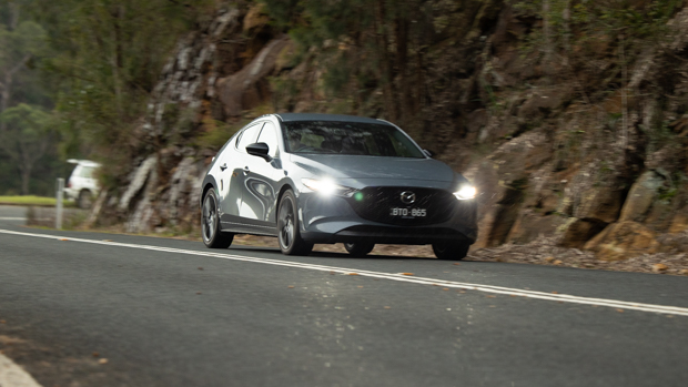 Given that every Mazda 3 variant aside from the base G20 Pure wears 18-inch alloy wheels (the G20 gets 16s), it should be no surprise that low-speed ride isn’t this car’s forte. Yet while there’s a firmness and sharpness to the Mazda 3’s ride quality, and quite a bit of movement over lumpy surfaces, body control is excellent and mid-corner bump absorbency is good enough to never betray the torsion-beam axle hiding underneath the rear.