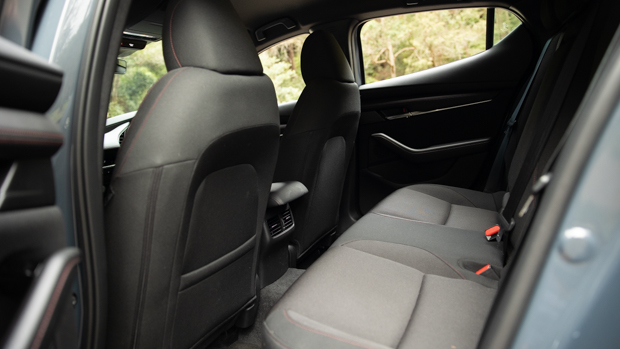 Straight off the bat, if vision is paramount, don’t buy a Mazda 3 hatch. The CX-30’s elevation and greater glass area immediately give it a big advantage, while the Mazda 3 sedan’s lower belt line and deeper rear windscreen provide a level of airiness that the hunched-over Mazda 3 hatch can’t.