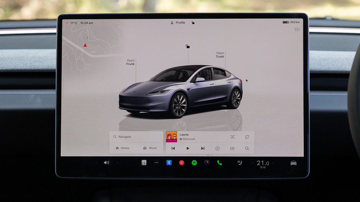 Where normally climate controls buried in a screen get a hiding, because the Model 3’s 15.4-inch touchscreen is so bright and responsive it’s a non-issue. The auto program (which now extends to the heated and newly-ventilated seats) worked seamlessly in Sydney’s cooler winter months.