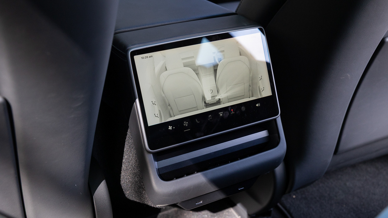 New for the Model 3 is the responsive rear screen that gives control of ventilation, seat heating, access to audio streaming, video streaming and even games to which you can connect a Bluetooth controller.