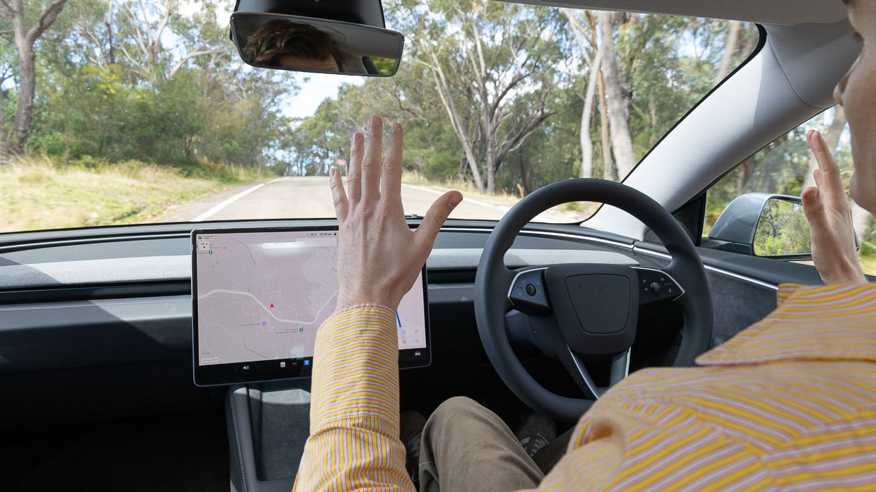 To comply with Australian laws (which require drivers to ‘stay in control of the vehicle at all times’, but do not specify hands or feet on controls), it’s the Supervised version of the technology.