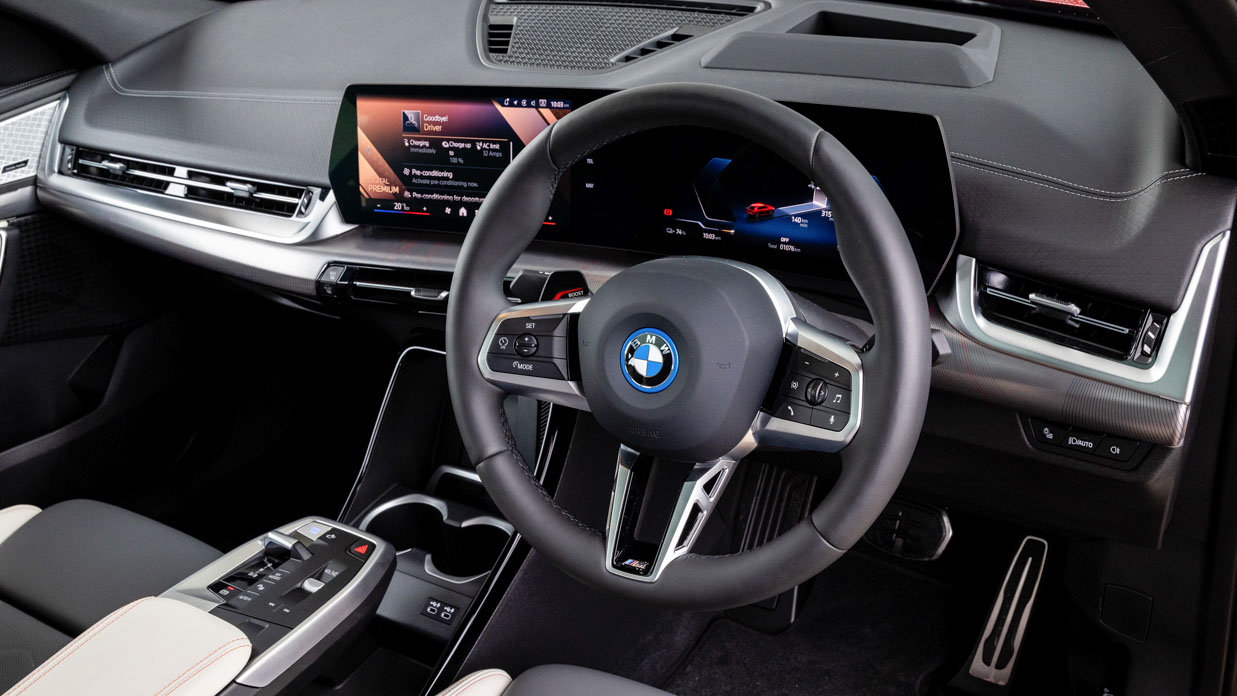 An M Sport package is also standard on the iX2 in Australia, complete with features like 19’’ M light-alloy wheels, a front and rear bumper panel with M-specific design, M identification on the sides, and a rear spoiler in high-gloss black.