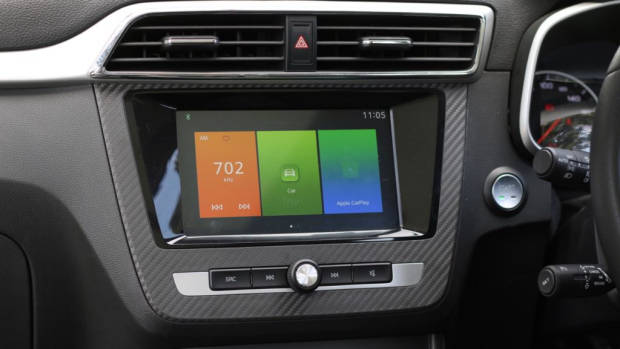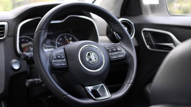 The styling, too, is tasteful. From some angles – and especially in the Diamond Red metallic hero colour – it can resemble Mazda’s popular midsizer but from others, MG has adopted fairly unique lines and the overall aesthetic is pretty classy. Inside, too, the design is pared back and conservative, though the cabin sports many elements that look quite familiar: you may get a laugh out of comparing the MG’s steering wheel to the Mk 6 Volkswagen Golf GTI.