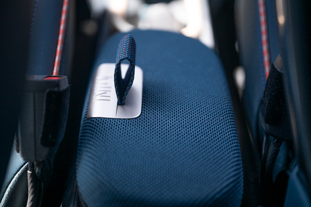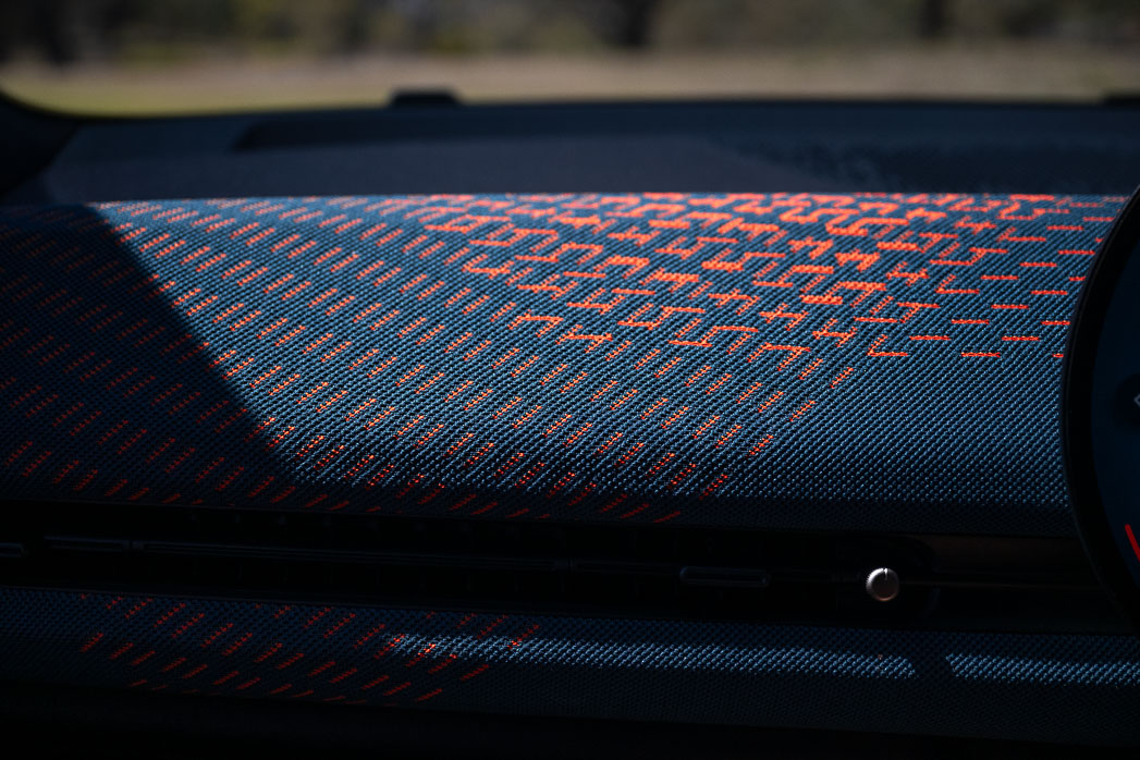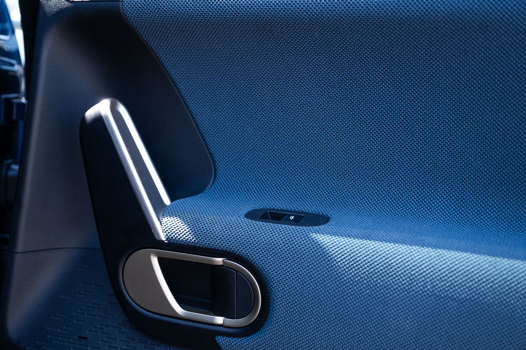 Necessary? No. Delightful? Indeed. And that neat and clever design ethos thread everywhere throughout the cabin, from the fabric steering wheel spoke and dash ‘strap’ ahead of the driver to the funky piston grip door grabs.