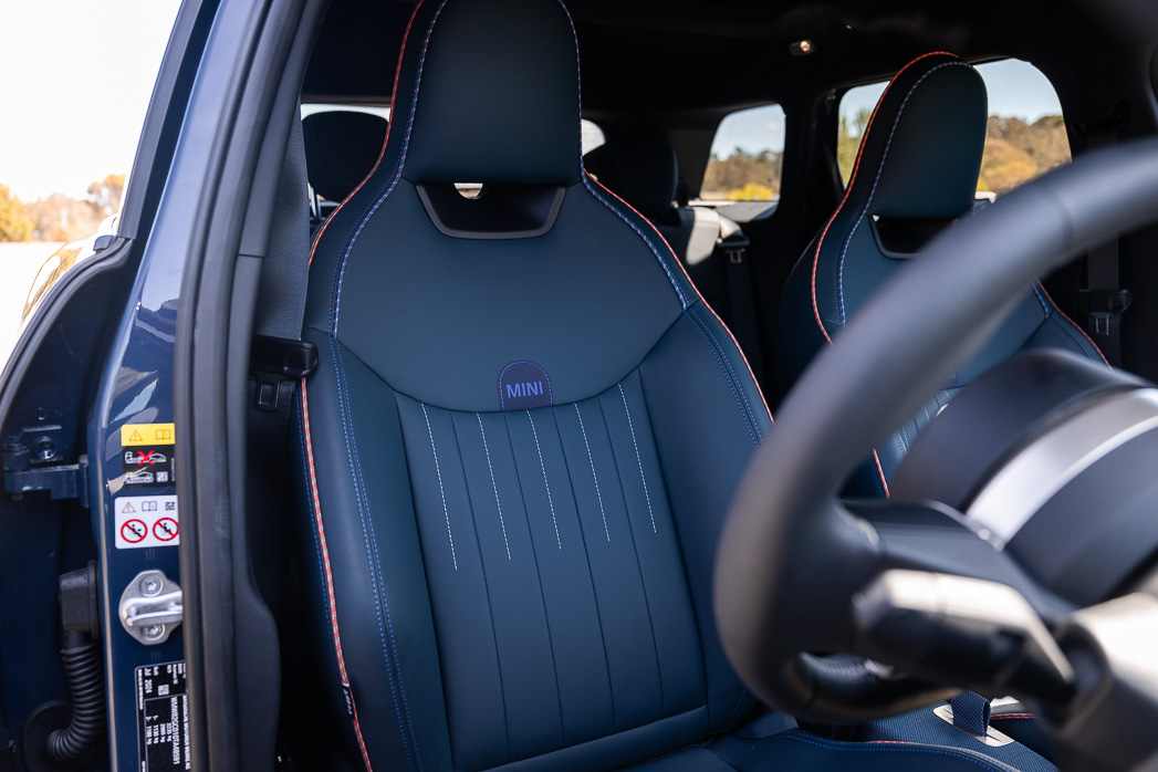 Lost, however, is real personalisation options, which used to be the cornerstone of the Mini experience. Outside of pain choice, it’s fully loaded, no option boxes to tick. And that includes the Dark Petrol (Blue) Vescin interior theme, which might be a bit of an eyesore cloaked in British Racing Green exterior bodywork…