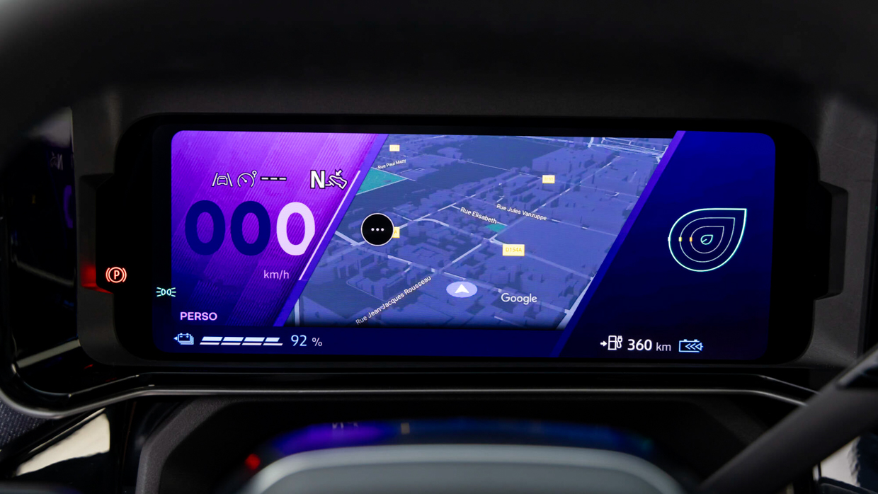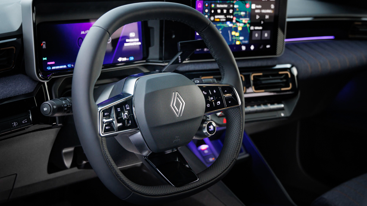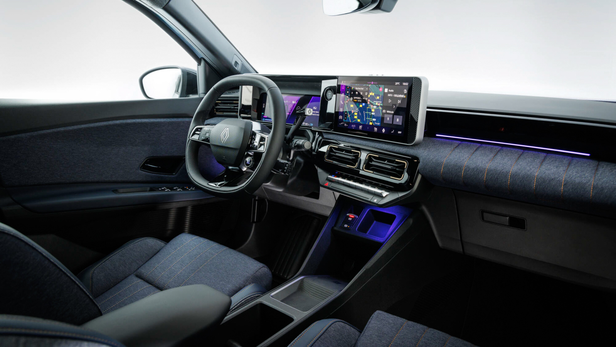 Paddle shifters on the Renault 4’s steering wheel toggle through four regenerative braking levels, the strongest serving up one-pedal driving.
