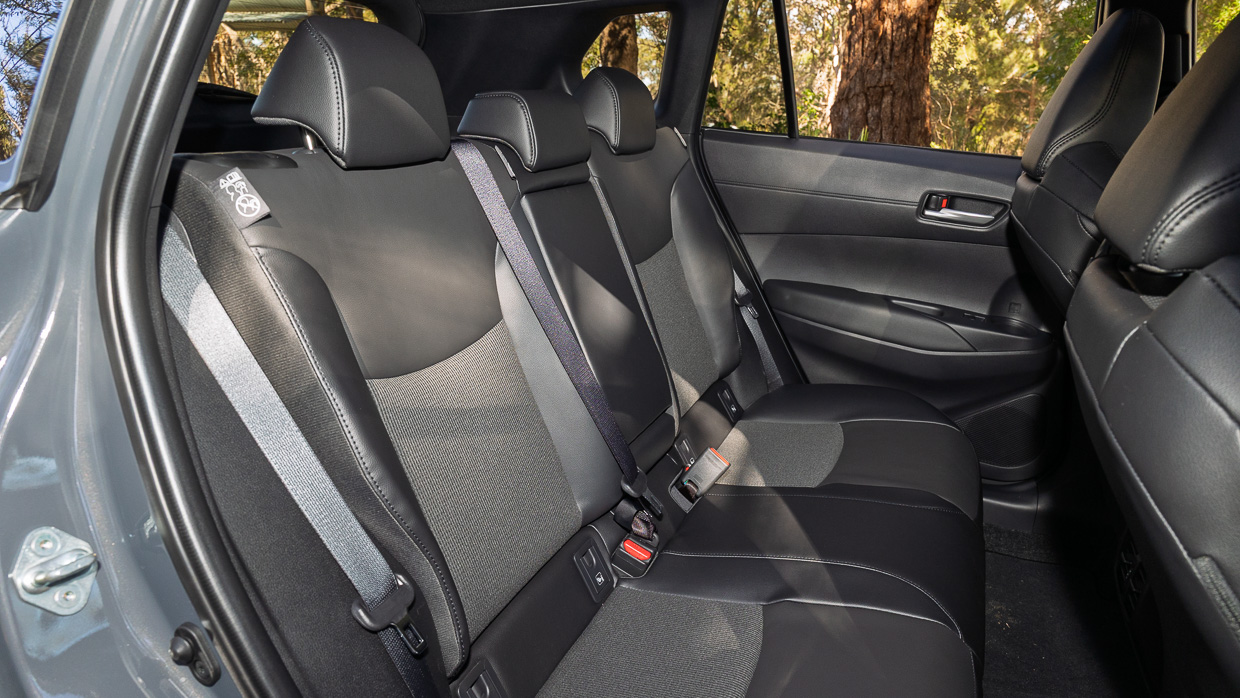 Second-row room is average, partly because front footwells force taller front occupants to set the front pews rearward on their rails. The upshot is that Corolla Cross is a four-adult proposition at best, and for shorter trips in order to avoid discomfort.