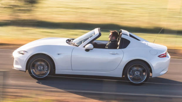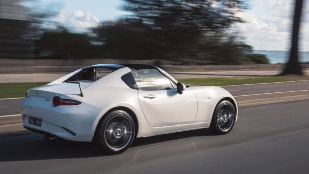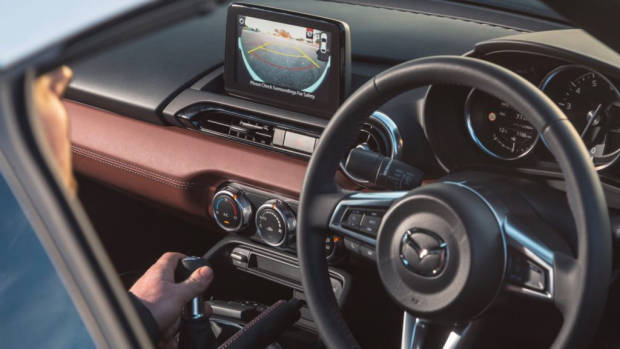 First, let’s cover off what hasn’t been changed: the MX-5’s cabin, suspension and steering are all untouched for 2019. Picking a new one apart isn’t easy: only the entry grades have a new, polished black finish to their 17-inch wheels. Otherwise, the MX-5 looks the same, aside from a cutout for the reversing camera, which at last, becomes standard equipment. Two body styles continue: a soft-top Roadster from $34,190, and a targa-style Retractable Fastback hard-top commencing at $39,400.