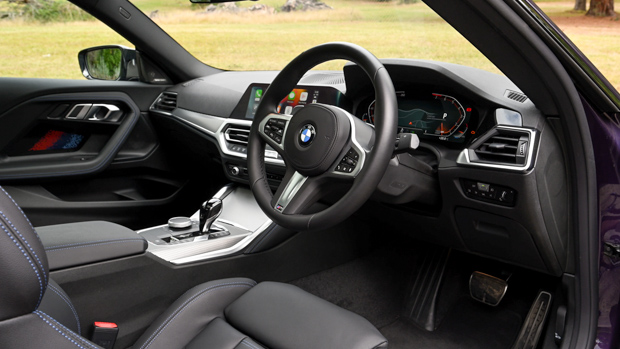 Covered in leather in our tester M240i, one way to make the cabin feel a little more youthful is to opt for a base 220i with its standard cloth seats – as this includes coloured cloth door trims.