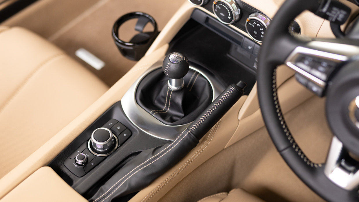For a time, MX-5 GT models could be specified with beige or tan leather seats instead of black — perplexingly, that option is now gone, except in an RF GT specified with automatic transmission.