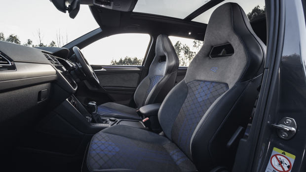 That will go a long way to explaining the front seats, which are proper R-branded buckets finished in classy velour and blue-tartan cloth. But they aren’t leather and they are manually-adjustable. That said, unlike in the T-Roc R Grid Edition, at least these pews are heated.