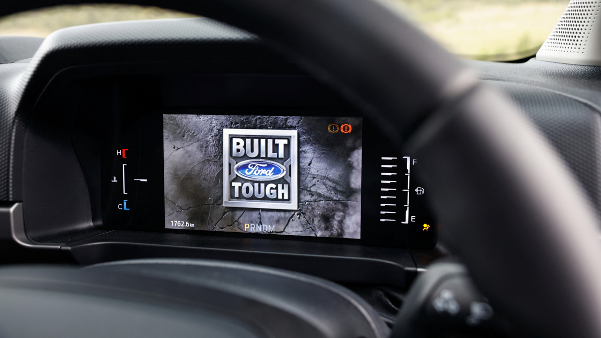 Standard is a 4.5-tonne compatible tow bar and hitch, integrated trailer brake controller, a tow/haul mode as part of selectable drive modes, plus Ford’s Pro Trailer Back-Up Assist where you use a centre console rotary dial to adjust steering while reversing. It’s hands-off steering wheel stuff… weird on first use, but regular tow folk will no doubt appreciate it.