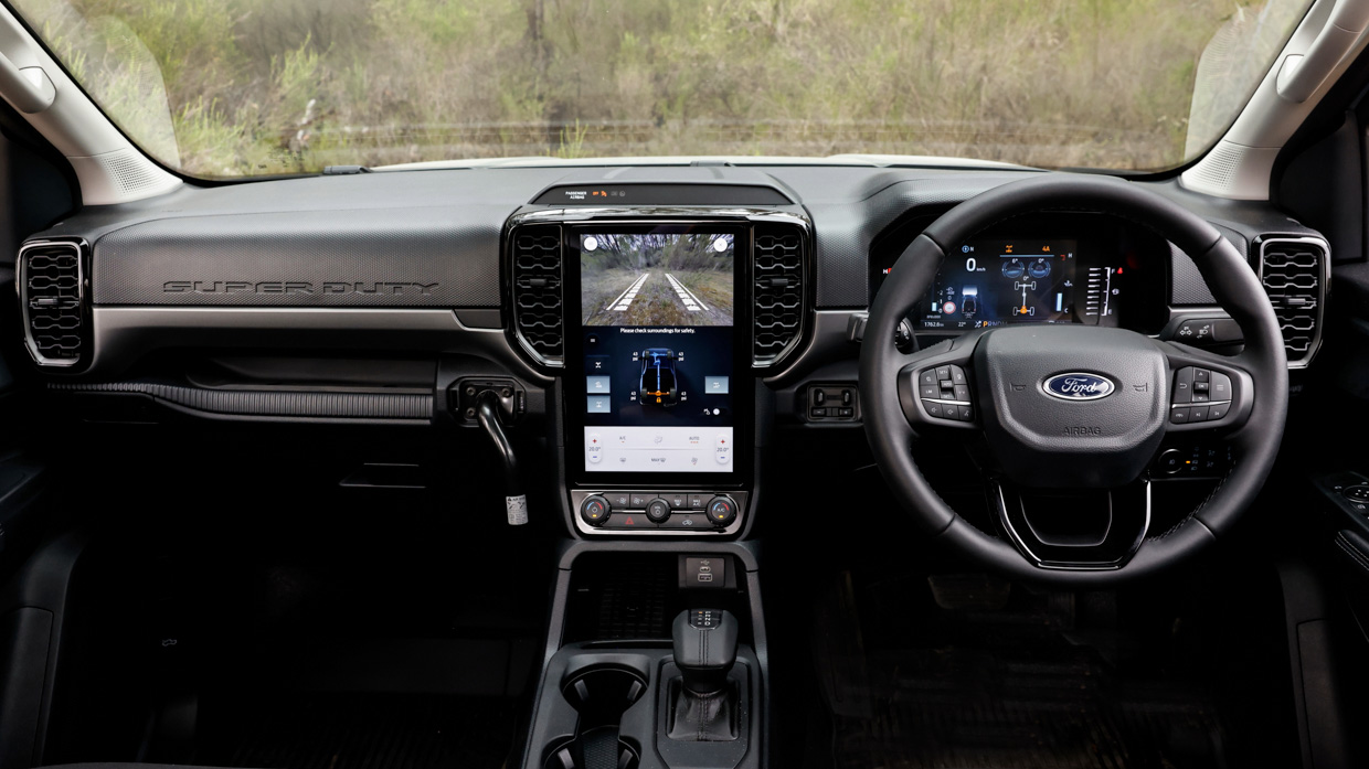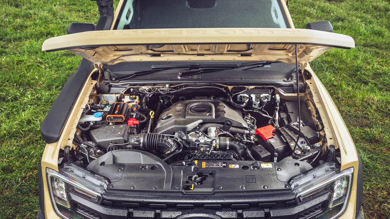 How about that V6? It’s got decent low-down punch thanks to it retaining the 600Nm of a normal Ranger’s 3.0L, but it is shifting greater mass – a Super Duty’s kerb weight (excluding tray) is between 2518kg and 2675kg, depending on body style. That’s some 200kg over a normal Ranger.
