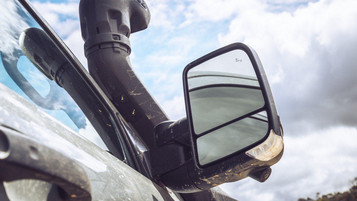 Over-sized mirrors and especially the as-standard Safari snorkel generated wind noise – markedly so at highway speeds – but the all-terrains don’t prove too noisily bothersome. Overall, it feels a well-sealed cabin.