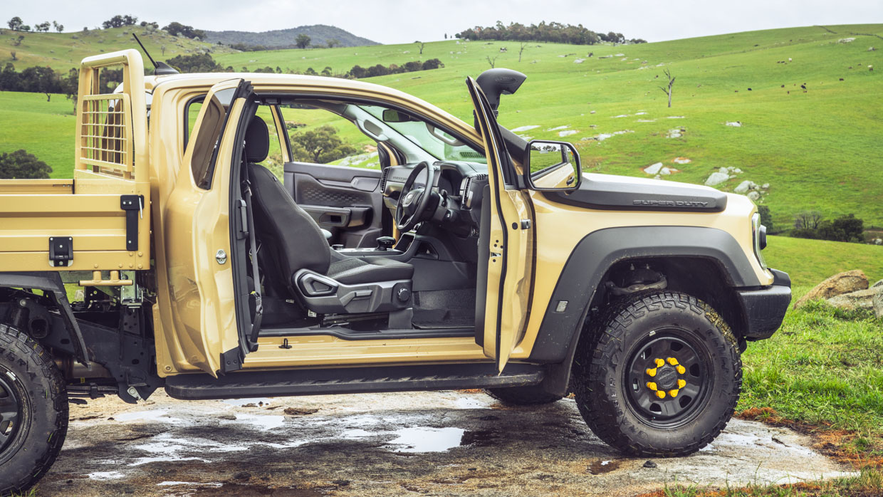 We’ve covered the Super Duty’s specs here, but in short, it launches with three cab-chassis body styles: a Single-Cab (two-door, two-seat) from $82,990; Super-Cab (tiny hinged rear doors) from $86,490; and Double-Cab (four-door, five-seat) from $89,990, all before on-roads and tray costs.