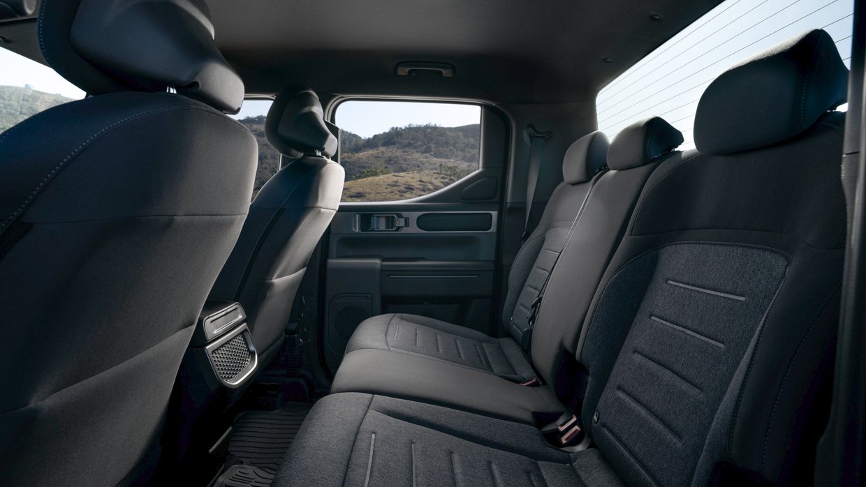 All Tasman variants have a bench-type rear seat, and three seatbelts. While the fancier X-series models add rear-seat slide and recline, the S/SX/SX+ have a fixed backrest and more legroom than most because the Kia is a longer vehicle than many rivals.