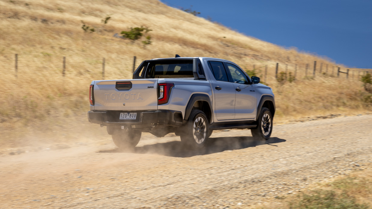 On country roads, the suspension struggles to handle large mid-corner bumps without several compressions to settle. It also rattles over corrugations. A full-time 4WD mode could help it win back some stability, but the 4×4 Hilux is still RWD-only on sealed surfaces.