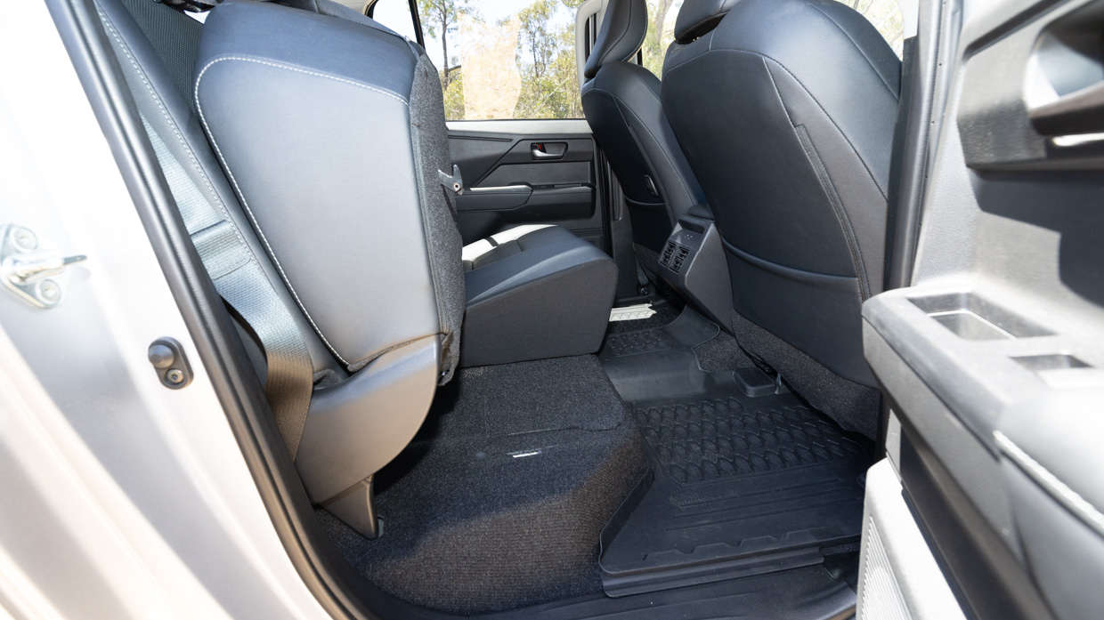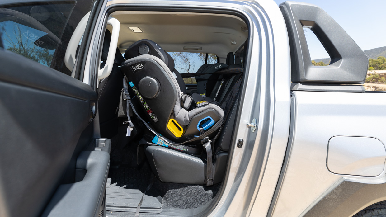 It makes fitting child seats a challenge in the Hilux, though it’s doable – assuming those in the front row aren’t too tall.
