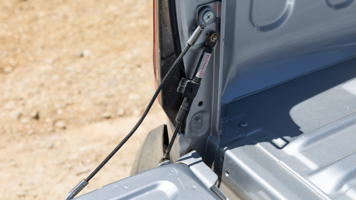 Even in up-spec SR5 trim, the Hilux is still missing a bedliner, any kind of auxiliary power outlet and is limited to four tie-down points. The tailgate is nicely damped, at least.