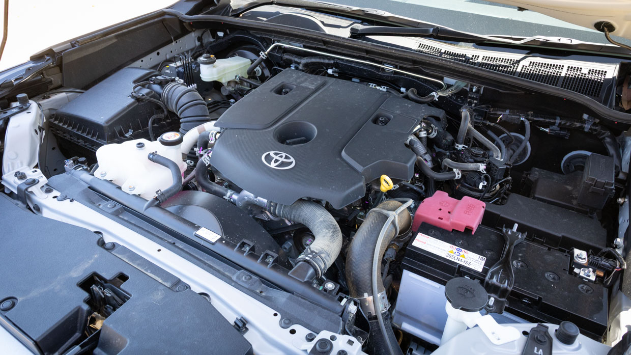 The 1GD turbo-diesel 2.8-litre four-cylinder engine is charming in an old-school sense, with the 150kW peak available from 3000–3400 rpm. As in the previous-gen Hilux, peak torque is down significantly from 500Nm in the automatic to 420Nm in the manual, between 1400–3400 rpm.