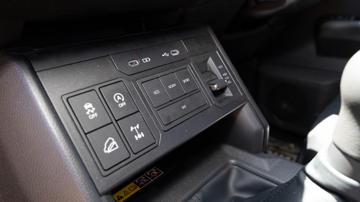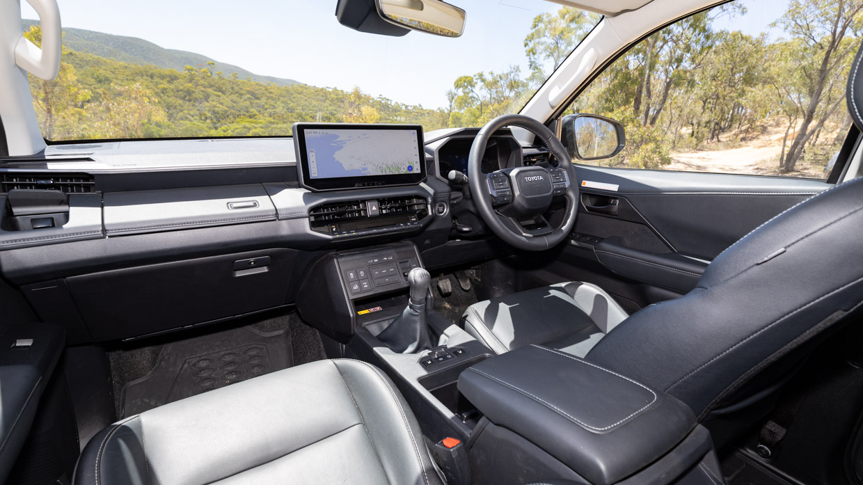 Toyota quotes a frugal 7.1L/100km for the SR5+ manual – besting the mild-hybrid auto at 7.4. In our testing, we saw an average of 9.1L/100km across a range of conditions, including a good deal of low-speed adventuring. That translates to a range of 879km from the 80L fuel tank.