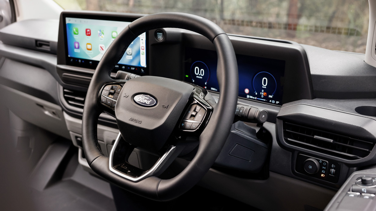 In either form, the Transit Custom presents as a well-equipped and practical space, with a high seating position offering good visibility in all directions.